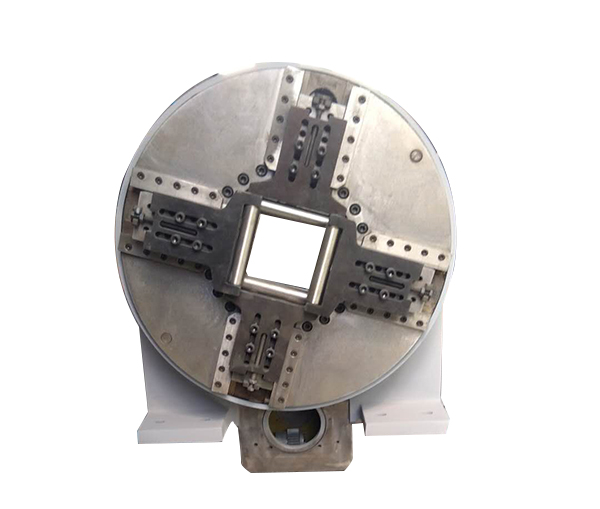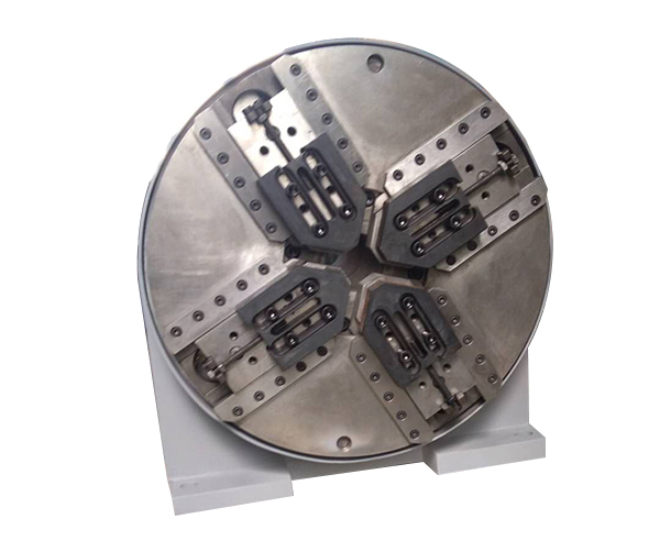 2、轉(zhuǎn)臺(tái)采用高度集成式設(shè)計(jì)方法,將卡盤、氣動(dòng)組件、回轉(zhuǎn)支承、分度機(jī)構(gòu)、減速機(jī)構(gòu)