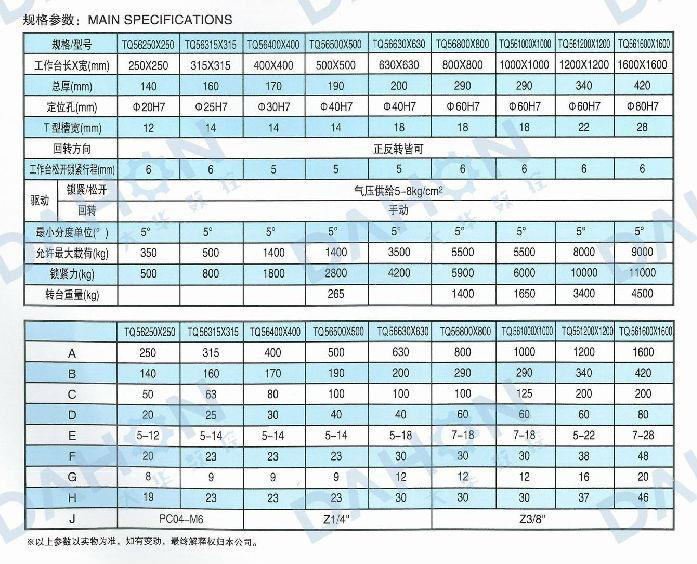 TQ56系列氣壓手動等分轉(zhuǎn)臺是以端齒盤為分度元件,氣壓抬起、手動轉(zhuǎn)位的高精度等分轉(zhuǎn)臺。它轉(zhuǎn)動力矩小、承載能力大、剎緊可靠,分度精度可達10",重復(fù)性3",適用于各類鏜、銑床、磨床等高精度加工場合。(可根據(jù)用戶需要設(shè)計制作其他規(guī)格)