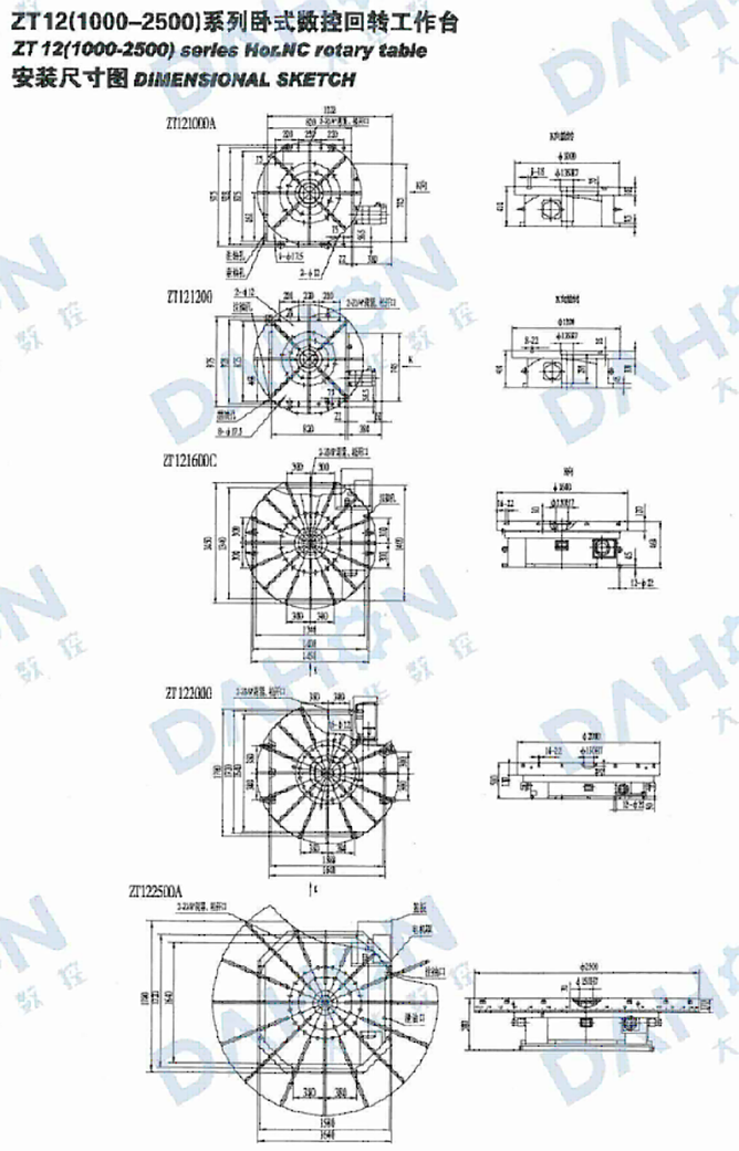 Model ZT 12 series Hor NC rotary table can carry out the perfor-mance of. direct and indirect dividing. plate processing, plate-satting various cam-curring.