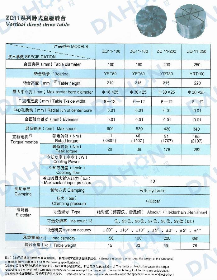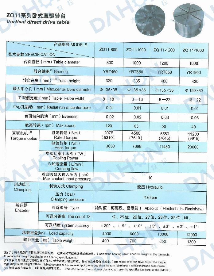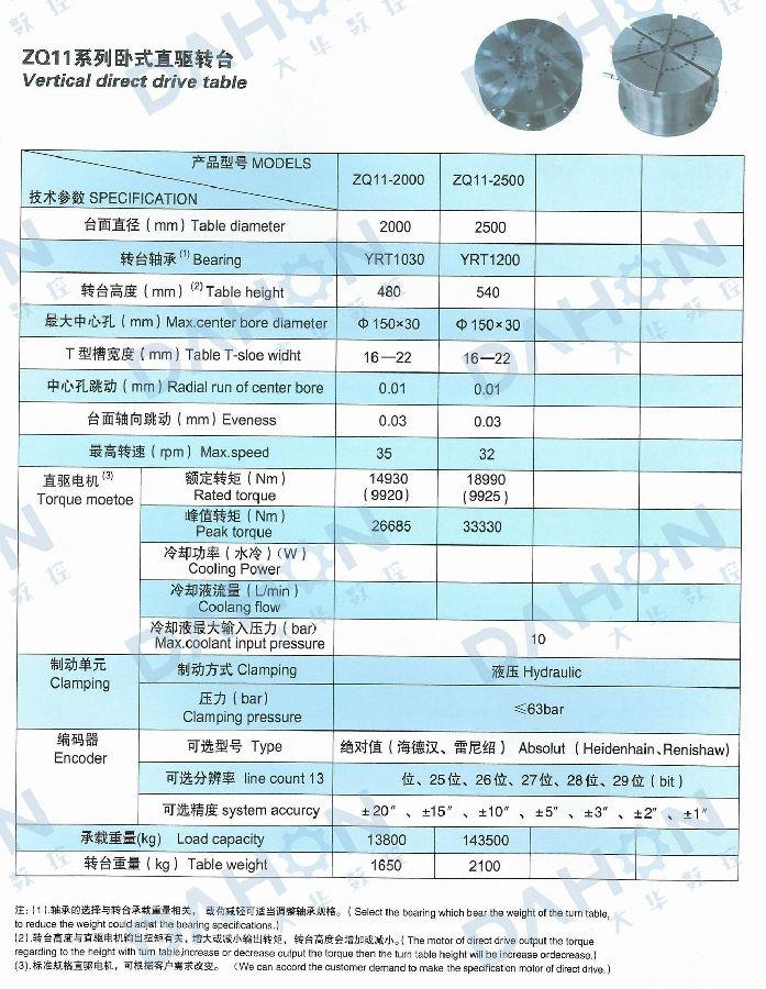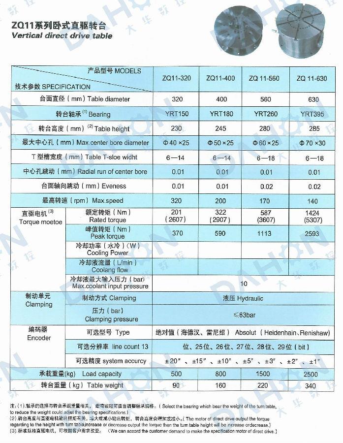 ZQ系列數(shù)控直驅(qū)回轉(zhuǎn)工作臺采用大扭矩力矩電機(jī)直接驅(qū)動,編碼器為反饋信號,可實現(xiàn)高精度的旋轉(zhuǎn)定位,是數(shù)控鏜銑床和加工中心的理想配套附件。工作時,在主機(jī)相關(guān)控制系統(tǒng)控制下,能夠完成與主機(jī)相協(xié)調(diào)的各種必需的分度回轉(zhuǎn)運動,實現(xiàn)等分、不等分的連續(xù)孔、槽、曲面的加工,且達(dá)到較高的精度。煙臺大華數(shù)控機(jī)床附件有限公司是數(shù)控機(jī)床附件設(shè)備的知名配套企業(yè),可生產(chǎn)多種型號臥式直驅(qū)轉(zhuǎn)臺產(chǎn)品,技術(shù)精湛,可定制研發(fā)。